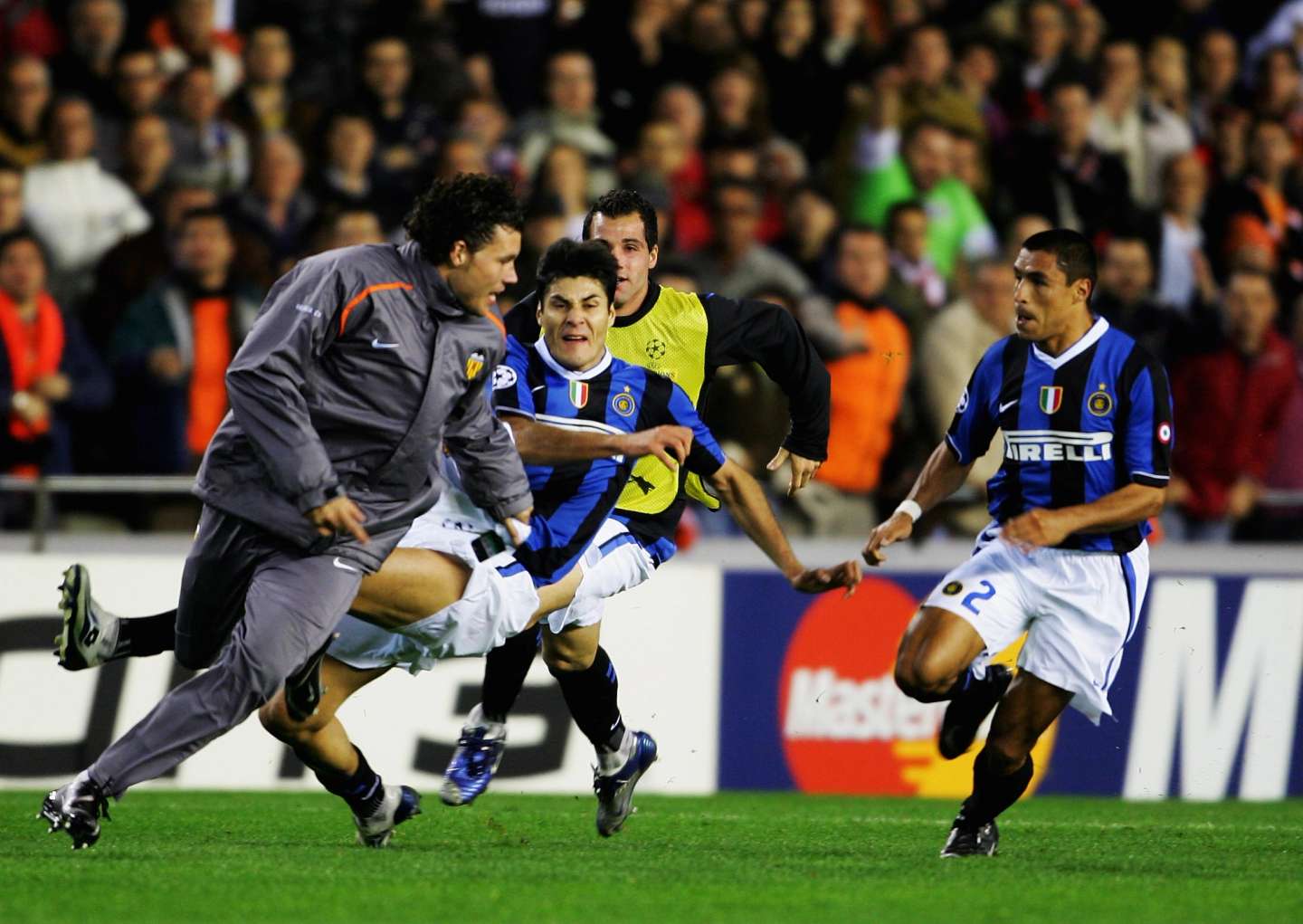 A Valencia succede tutto in pochi secondi, fino all’arrivo di un omone in grigio. Non è l’arbitro, non è un dirigente, non è qualcuno al di sopra delle parti. È un calciatore del Valencia, vestito con l’uniforme di chi non si è guadagnato la possibilità di scendere in campo nei 90 minuti. David Navarro si getta nella mischia e va a prendere di mira il più scatenato degli interisti. Il suo pugno frantuma il setto nasale di Nicolas Burdisso e scatena un’altra reazione naturale: l’inseguimento.