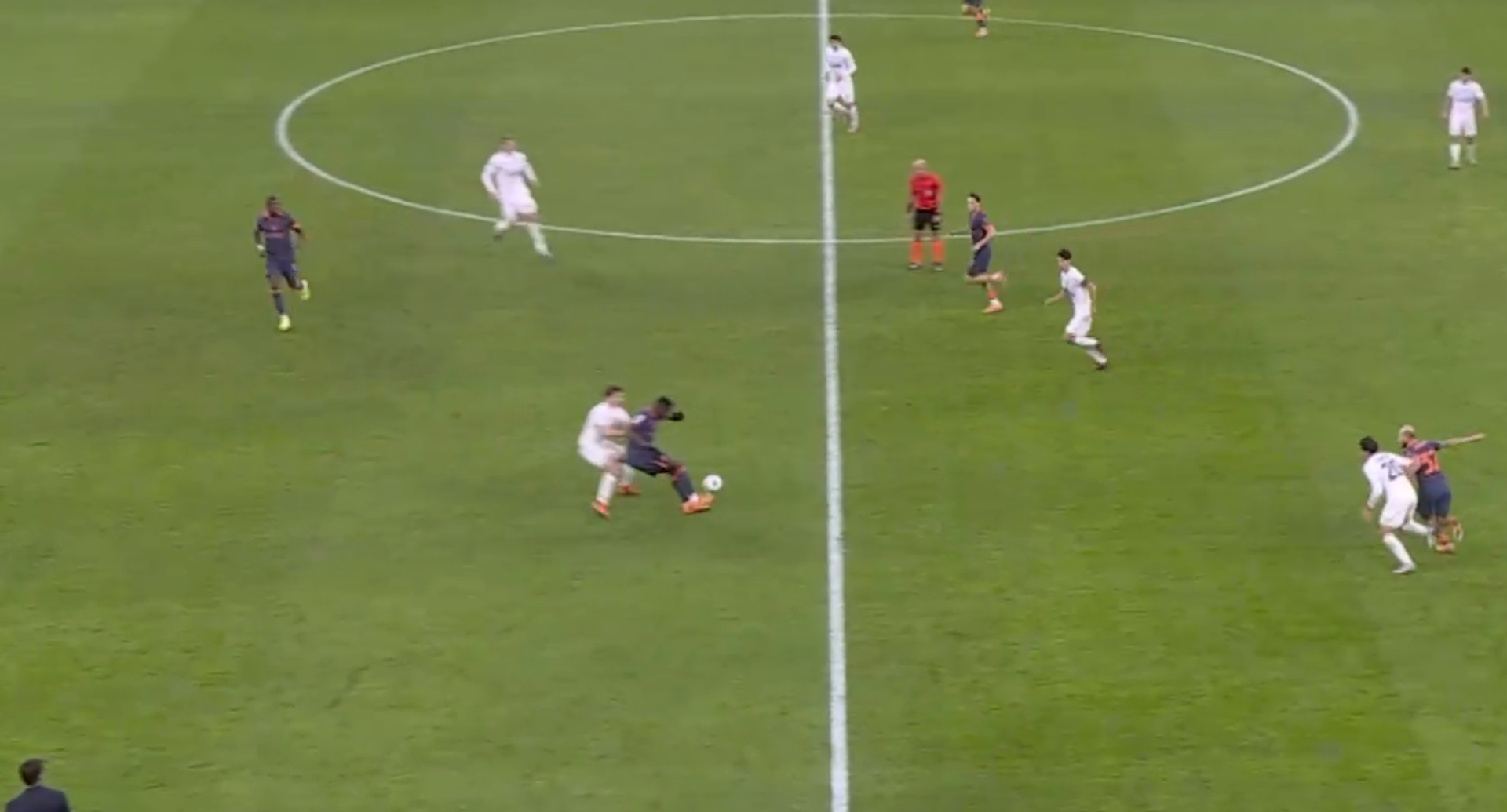 I due hanno giocato insieme per pochi minuti e pure in un tempo limitato abbiamo visto che a ricevere la palla addosso, in quei frangenti, è Bonny, mentre il numero 9 scatta subito in avanti. Al 74' contro il Kairat accade lo stesso, ma stavolta Bonny riesce a girarsi e andare in accelerazione, lasciando sorpreso Thuram che si era avvicinato per favorire un passaggio.