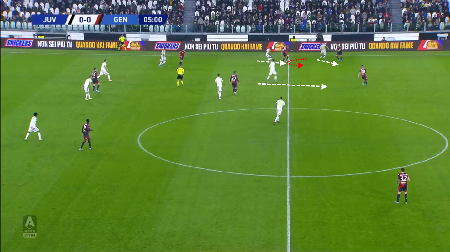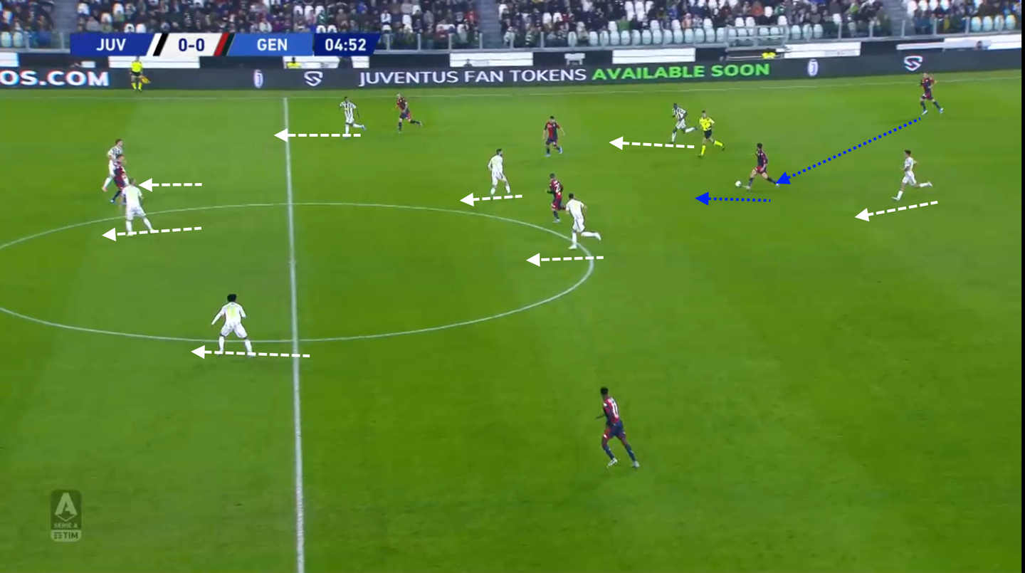 Il pressing della Juventus viene saltato e tutta la squadra ripiega verso le posizioni difensive preordinate.