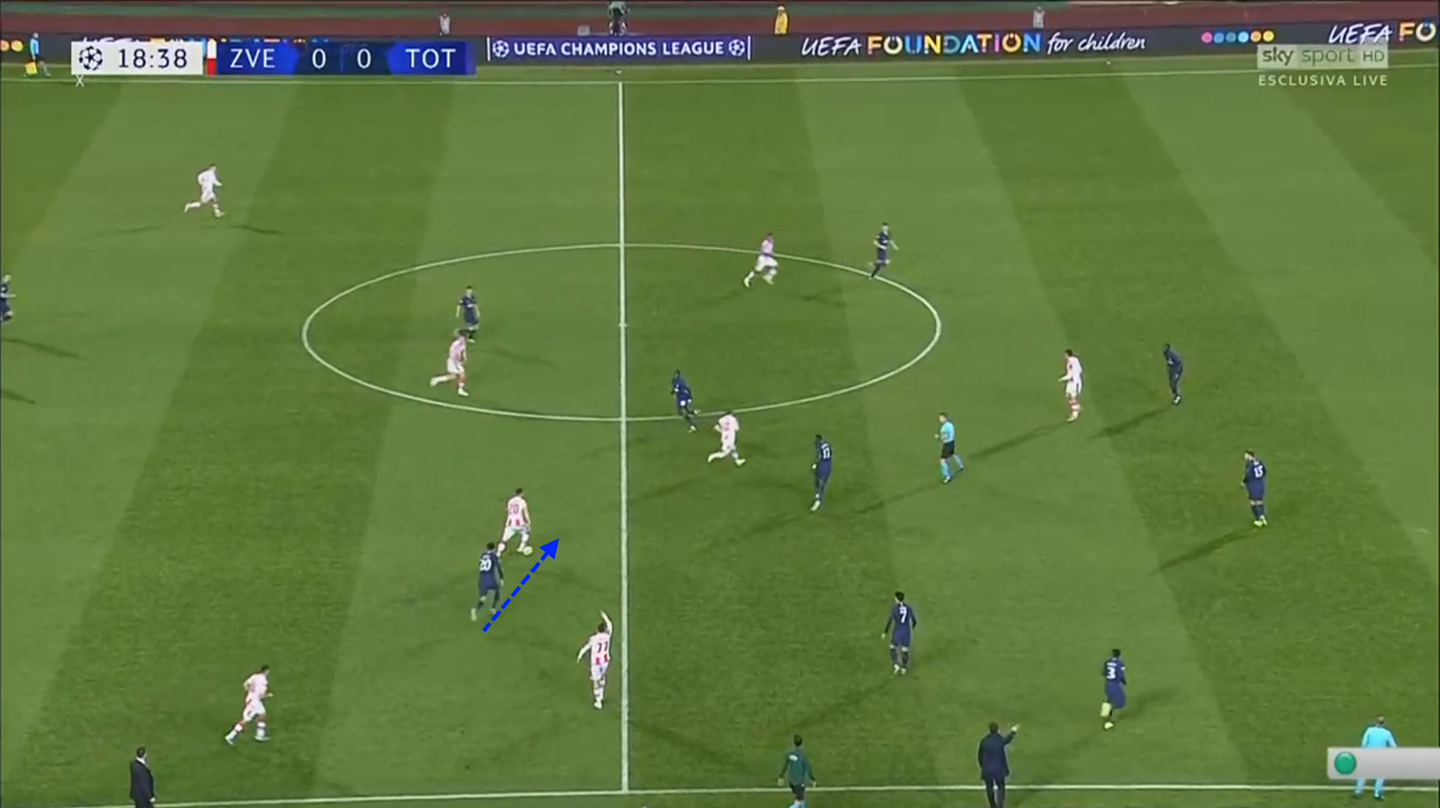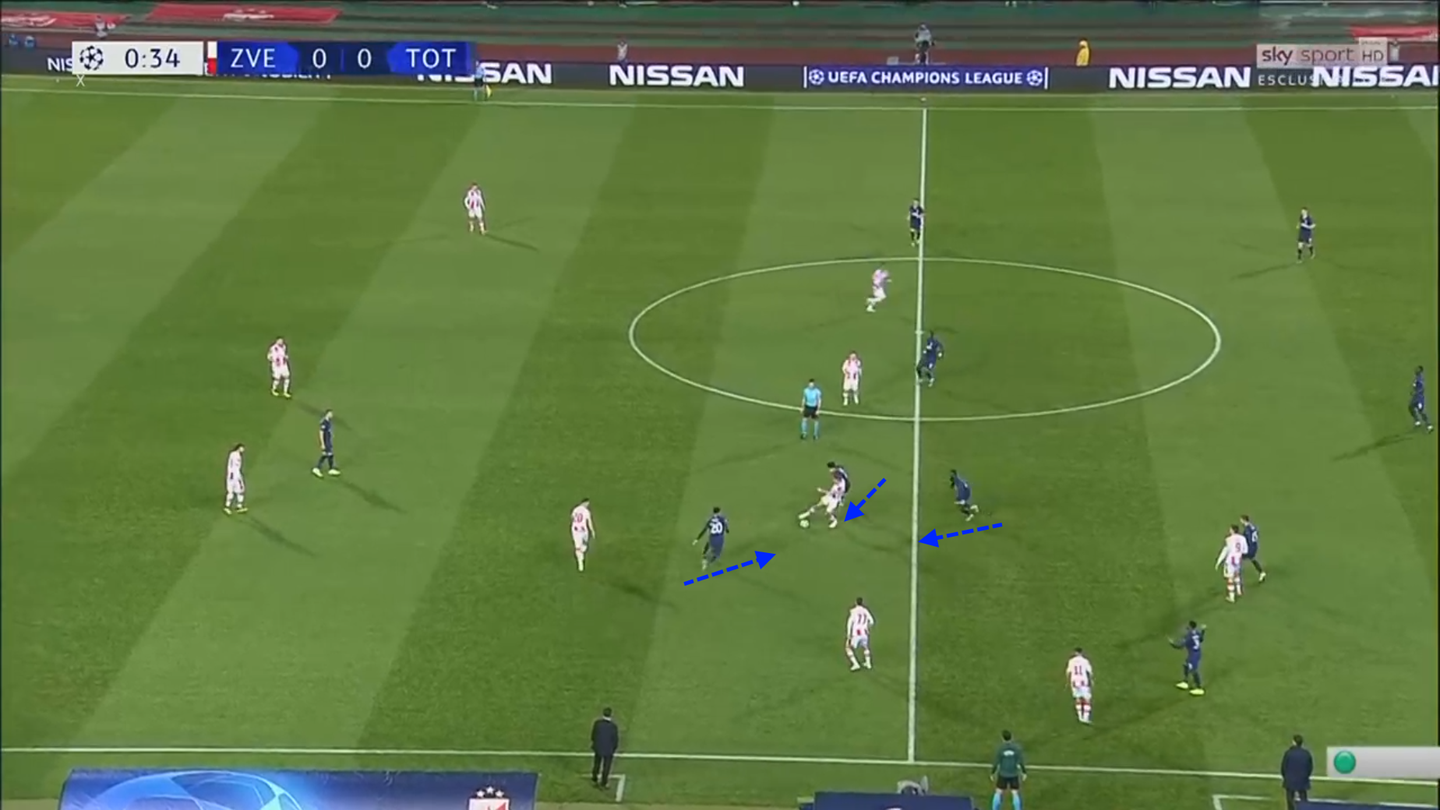 Qui il Tottenham sfrutta due esitazioni della Stella Rossa, prima collettivamente e poi singolarmente, grazie alla tenacia di Son che insegue un avversario indeciso.