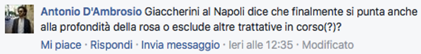 L’acquisto di Giaccherini risponde bene alla doppia esigenza di De Laurentiis in questo mercato: dare profondità a una rosa lo scorso anno apparsa troppo corta, razionalizzare le risorse. E non c’è giocatore più razionale di Emanuele Giaccherini, che al Napoli fornirà un’alternativa a Insigne o a Callejon nel ruolo di esterno d’attacco o ad Hamsik nel ruolo di mezzala di possesso (lo ha confermato il suo procuratore del resto).