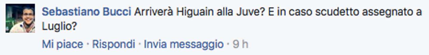 Avendo visto quasi tutte le partite giocate da Higuain, però, devo aggiungere che l’ho visto giocare sempre con la stessa convinzione e le soddisfazioni economiche e sportive che gli potrebbe garantire la Juventus potrebbero colmare il vuoto di motivazioni (per quanto sia brutto da immaginare) persino di un pubblico come quello di Napoli.