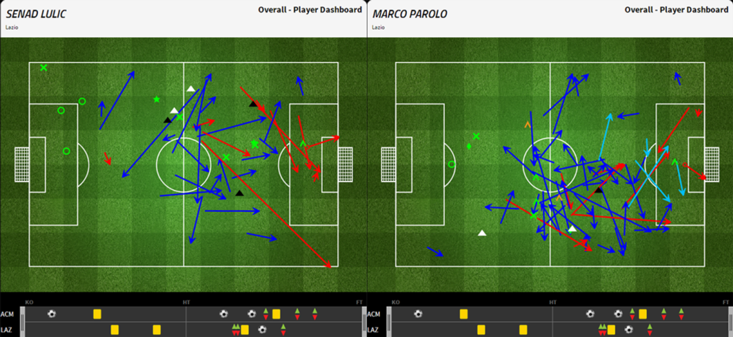Nonostante le difficoltà nello scardinare la difesa avversaria, la partita di Parolo è stata migliore di quella di Lulic anche dal punto di vista statistico: l’ex parmense ha toccato più palloni, effettuando 44 passaggi (contro i 22 del compagno) con una precisione del 88% (contro il 76% di Lulic).