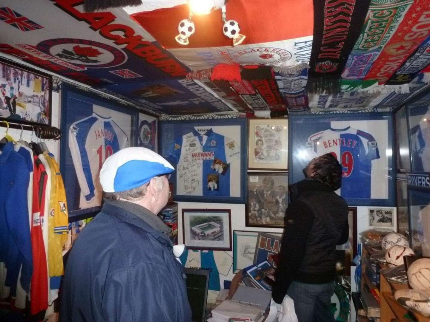 Quando si avvicina alle scale e dice, «venite su, dove tengo tutta la roba del Blackburn» mi chiedo cosa possa esserci qualcosa di più di quel che abbiamo visto sotto. È un tripudio di magliette, bandiere, sciarpe, biglietti, ricordi oltre il limite dell’assurdo: non c’è un centimetro libero sul muro e a terra spuntano cartoni pieni di roba bianca e blu. Tira fuori tute, cravatte, spille e perfino scarpe di giocatori elencando i nomi come se parlasse di Maradona e Zico, o almeno Shearer. E invece no. Il primo paio di scarpe, scopriremo, sono di un giocatore degli anni Settanta che ha fatto appena qualche presenza. Lui quelle scarpe le coccola. Le seconde sono di un ragazzo degli anni Ottanta usate durante una partita della nazionale giovanile. Birdy parla, si esalta, poi si commuove. E non toglie nemmeno in casa il basco bianco e blu che indossava anche al pub. C’è anche la maglia di Shearer, ovviamente. Ma sono i dettagli dei calciatori che magari hanno giocato solo una partita col Blackburn a stupire. Anzi, diciamola tutta, a fare paura.