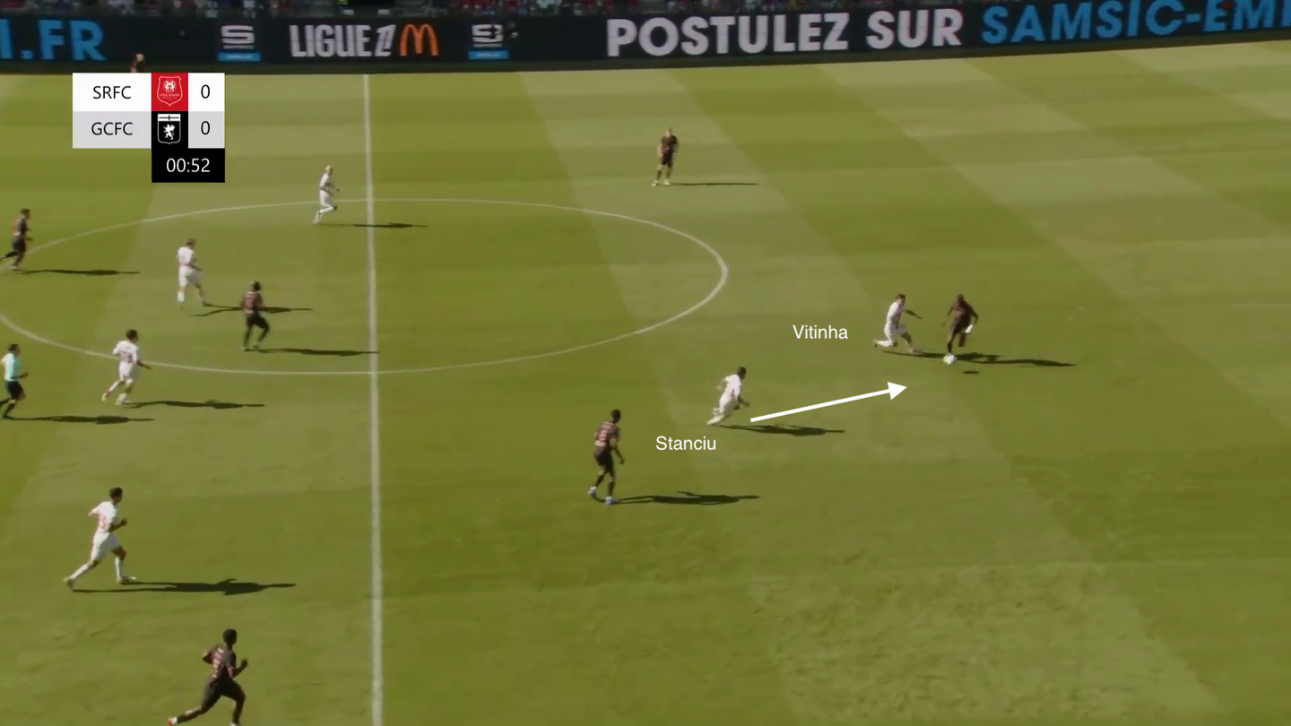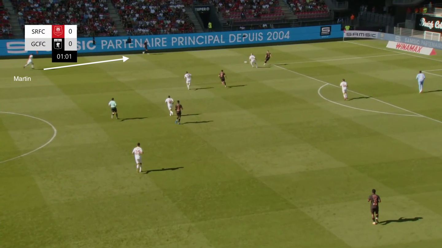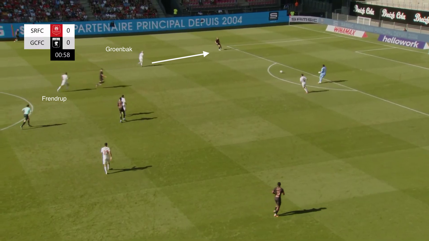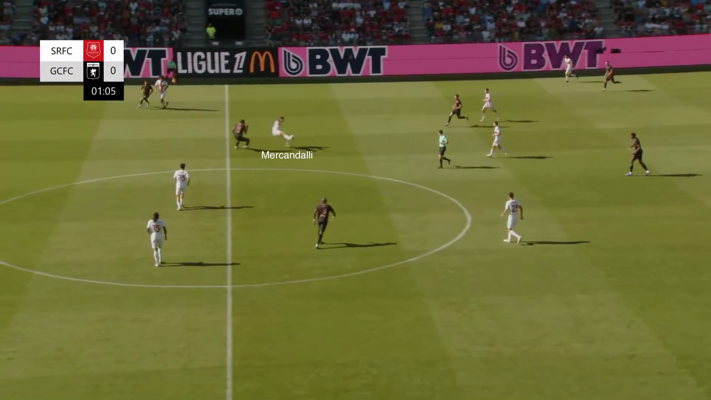 I dati da questo punto di vista sono abbastanza indicativi: dal suo arrivo Genoa ha visto schizzare i propri numeri per quanto riguarda PPDA, aggressioni, tackle e tutto ciò che contraddistingue il pressing. Anche in queste prime amichevoli della nuova stagione si è vista una squadra ambiziosa da questo punto di vista: contro il Rennes, per esempio, dopo neanche un minuto il tentativo di possesso palla dei francesi è stato pressato a tutto campo, con il difensore centrale Mercandalli che ha anticipato l’attaccante avversario oltre la metà campo difensiva, nonostante non avesse copertura alle spalle.