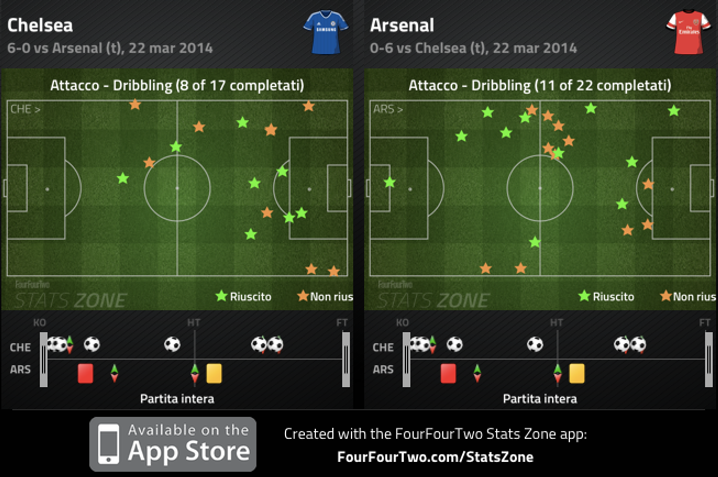 La trazione anteriore del Chelsea: la maggior parte dei dribbling sono nelle zone più pericolose di campo. Se la palla arriva ai tre dietro Torres o Eto'o sono guai per qualsiasi difesa (e Thiago Silva potrebbe non essere abituato ad avversari di un livello del genere).