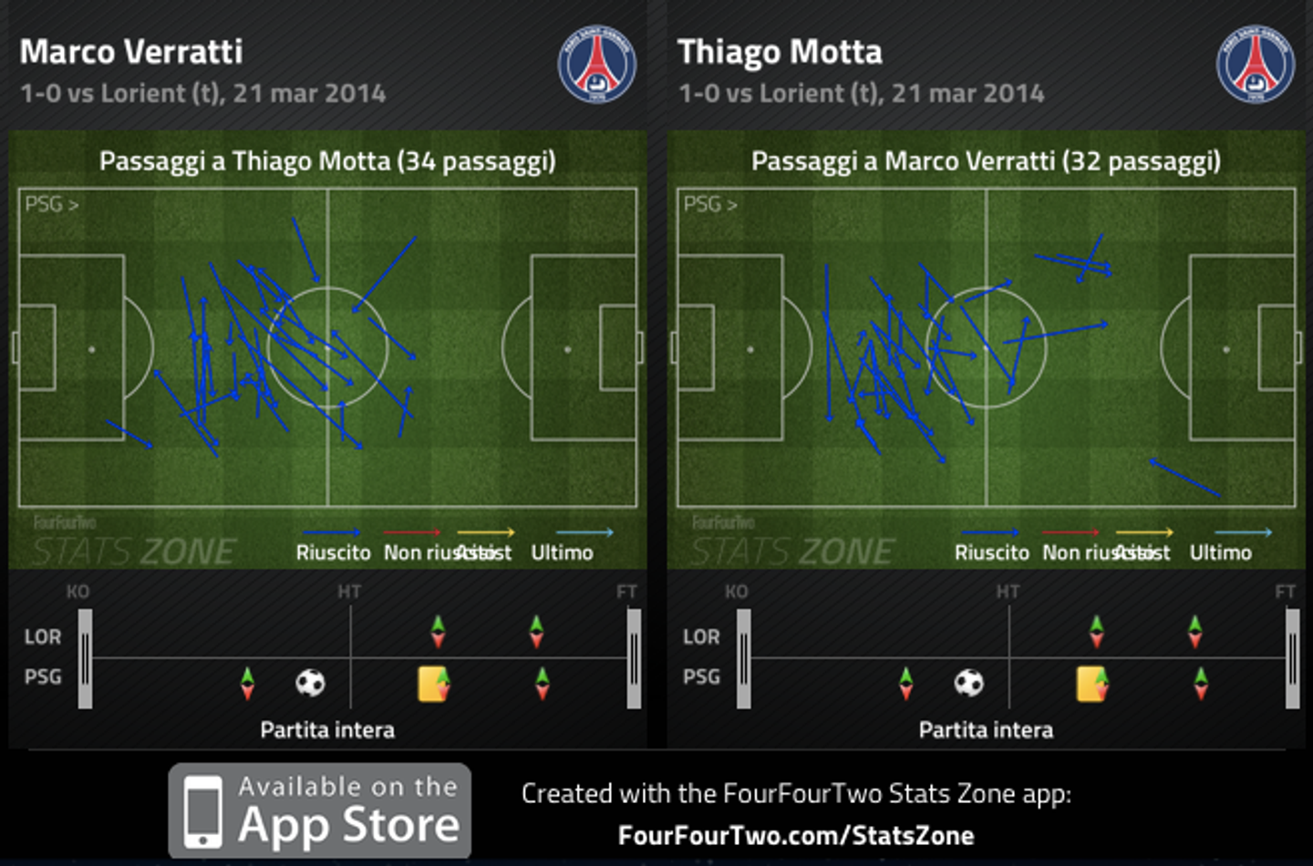 Due giornate fa in campionato, contro il Lorient, Motta e Verratti si sono fatti 66 passaggi (tutti riusciti) tra loro.