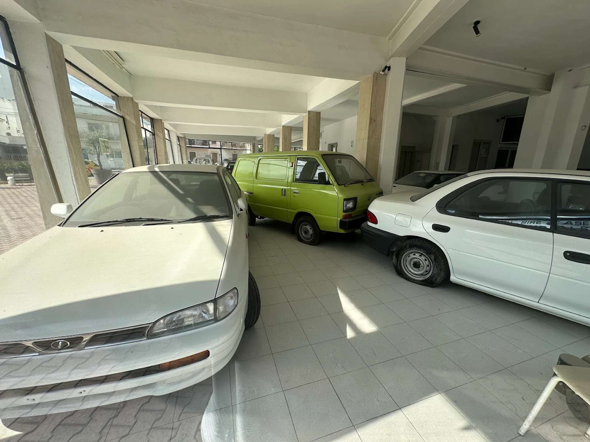 Se vi piacciono le auto brutte questo, mi sembra, è il posto che fa per voi. Un concessionario di auto della Subaru fermo agli anni ‘90, nel momento storico in cui si facevano le macchine più brutte.