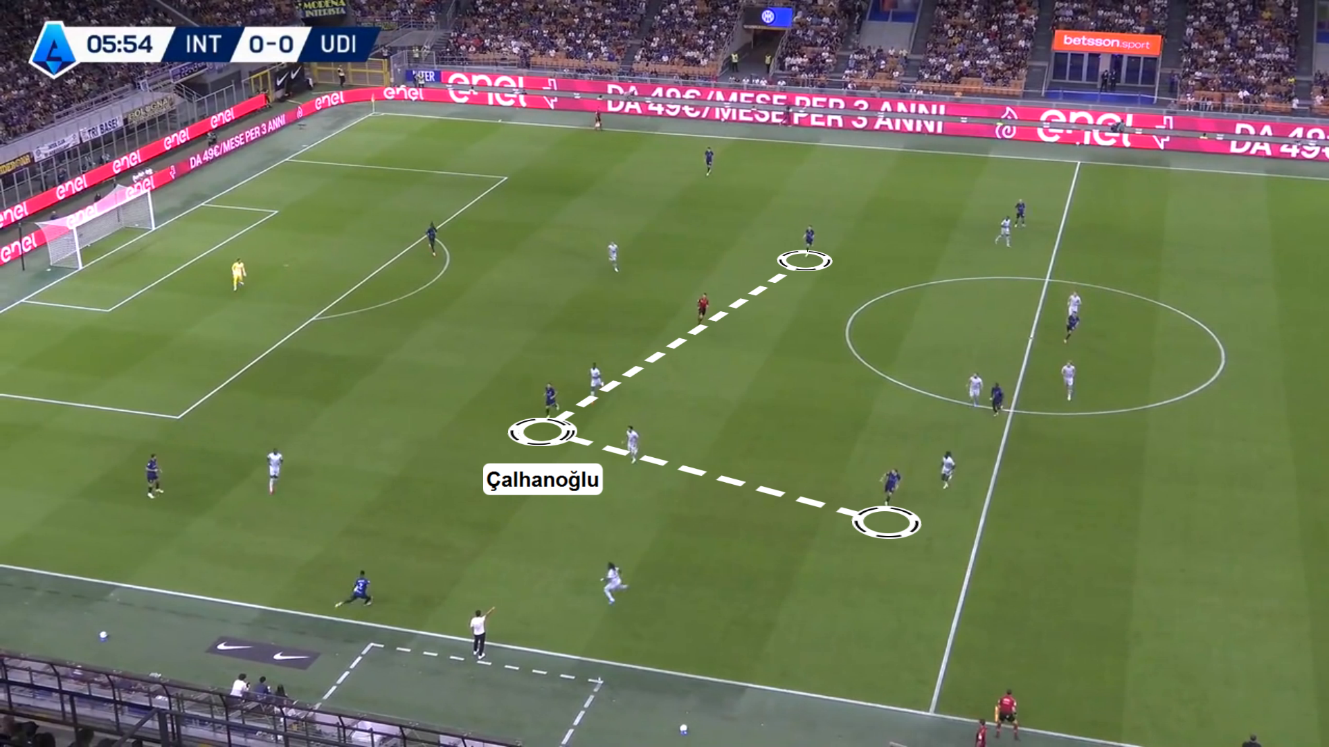Eppure c'è una convinzione radicata che l'Inter sia molto più verticale della scorsa stagione, forse dettata da alcuni cambiamenti tattici apportati da Chivu. Uno di questi è stato l’utilizzo di Hakan Çalhanoğlu. Il turco infatti tendeva ad inserirsi meno nella linea difensiva in fase di primo possesso, lavorando invece prevalentemente davanti ai tre difensori.