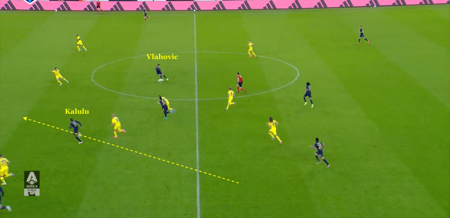 La squadra di Baroni prova a schiacciare la Juventus sulla linea del fallo laterale ma il possesso avversario scopre la parità numerica dietro e alla fine Romagnoli è costretto a un fallo da ultimo uomo che gli costerà l'espulsione.