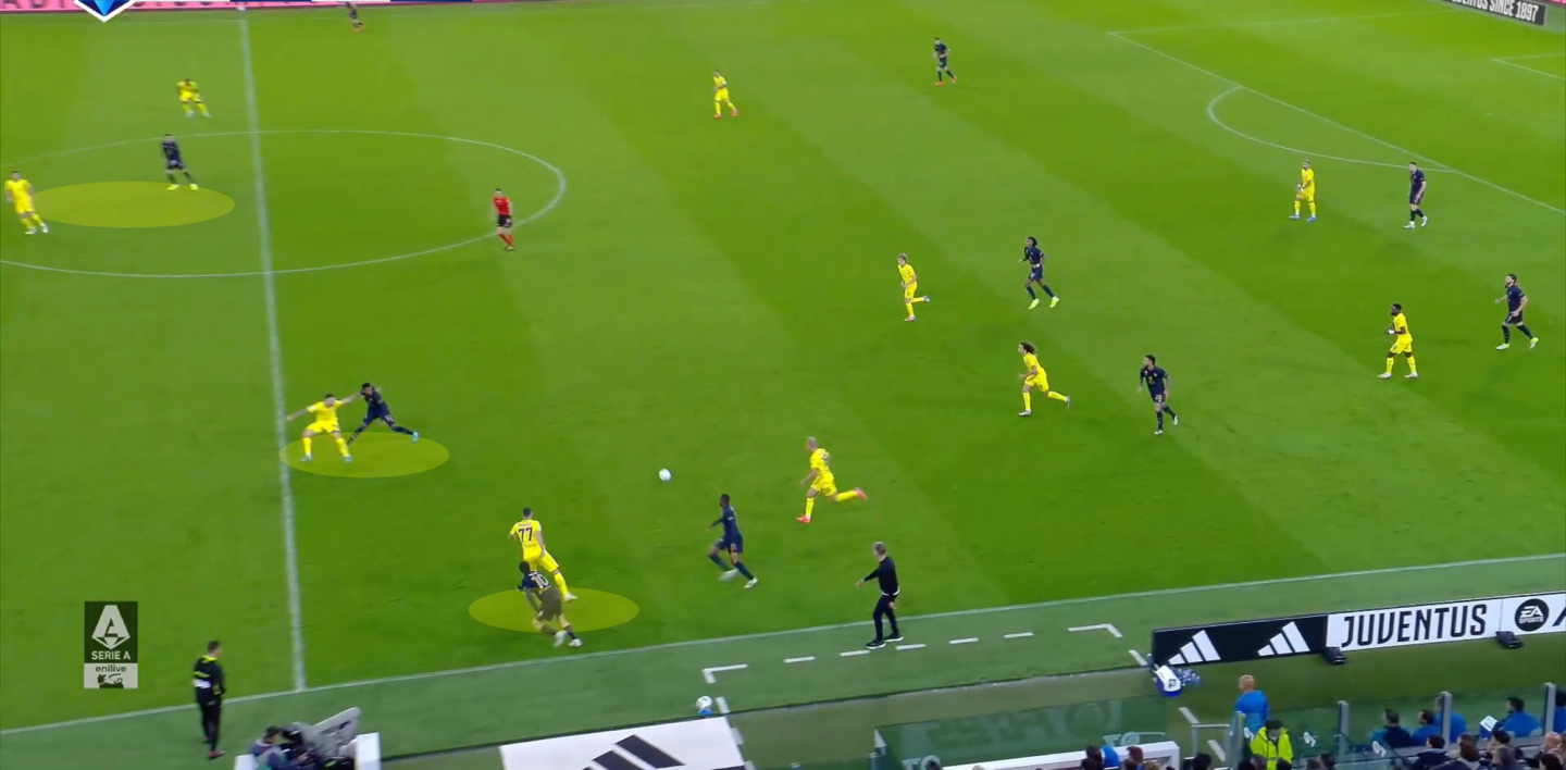 Stringere il campo nella zona della palla permette alla Lazio di usare altre risorse offensive. Per esempio sovraccaricare le linee di passaggio di uomini per utilizzare il velo e liberare così i compagni con semplici passaggi esterno-interno.