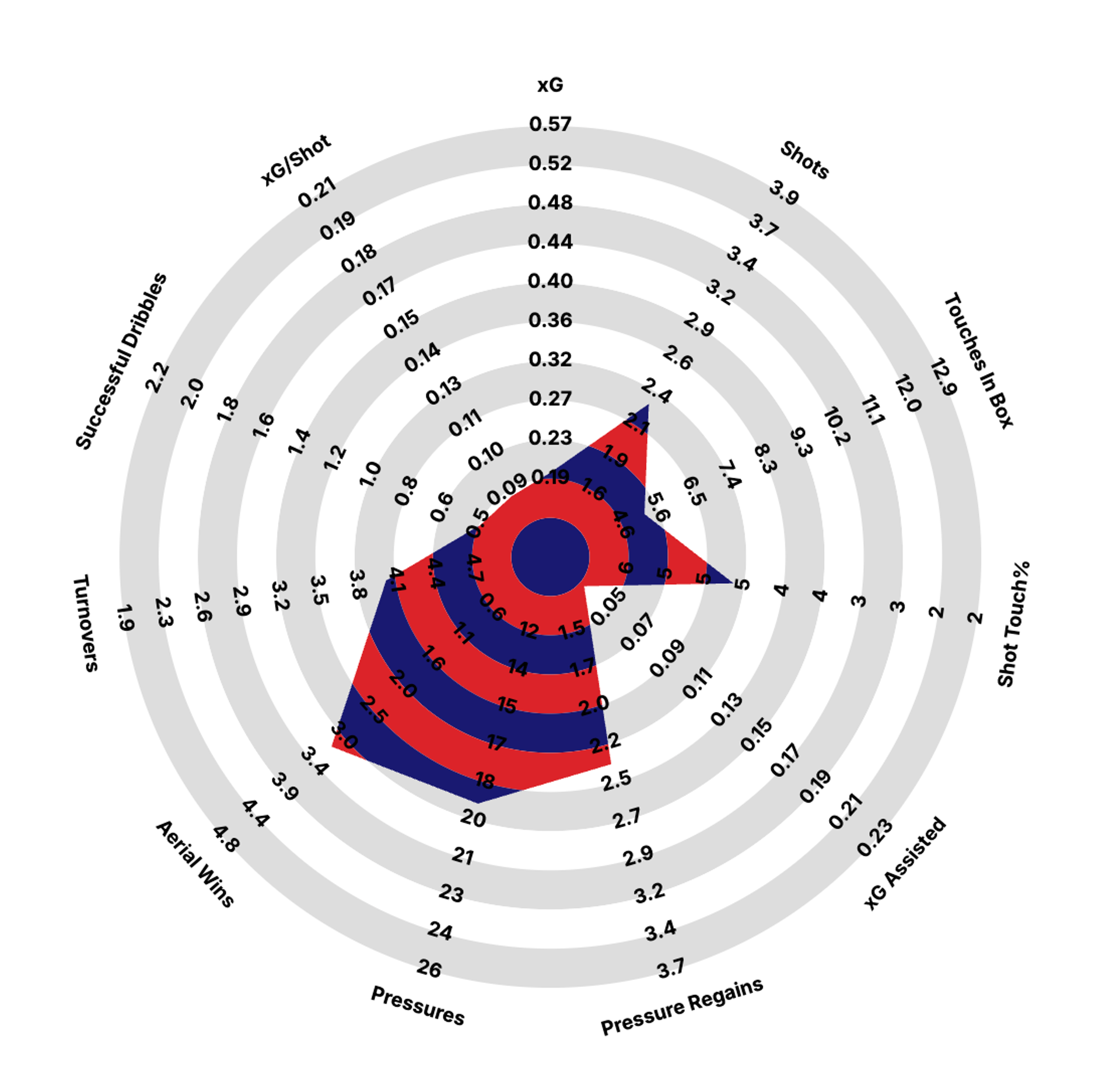 Anche statisticamente, guardando i radar di Statsbomb il salto dal Genoa all’Atalanta, sembra di parlare di due giocatori diversi.