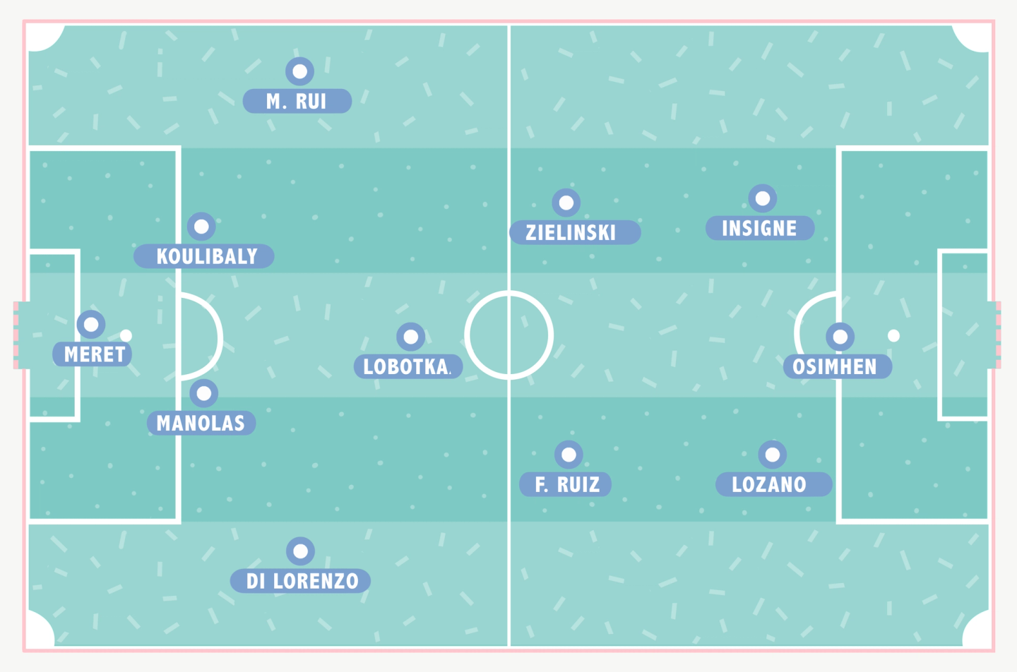 Nella zona di finalizzazione, di solito, il centravanti e le due ali si ritrovano molto vicine, a cercare combinazioni tecniche nello stretto per provare a penetrare in area di rigore. Quello che è mancato al Napoli finora, è stato un uomo capace di buttarsi in area sui movimenti incontro degli attaccanti. La pulizia tecnica, la precisione e la potenza di calcio di Zielinski non si discutono, ma il polacco non sembra avere nelle proprie corde l’istinto dell’assaltatore. Ha preso di più l’iniziativa Elmas, schierato da mezzala destra, ma il macedone oggi è un ragazzo di ventuno anni, ancora piuttosto discontinuo nelle sue prestazioni, su cui Spalletti avrà la possibilità di lavorare. Per di più, contro le difese chiuse, la presenza di un solo uomo ad offrire l’ampiezza non aiuta (se un terzino si sgancia, l’altro resta). Il Napoli non ha invece difficoltà ad attaccare il campo lungo, con la supremazia nella corsa palla al piede di uomini come Osimhen, Zielinski, Politano e Di Lorenzo.
