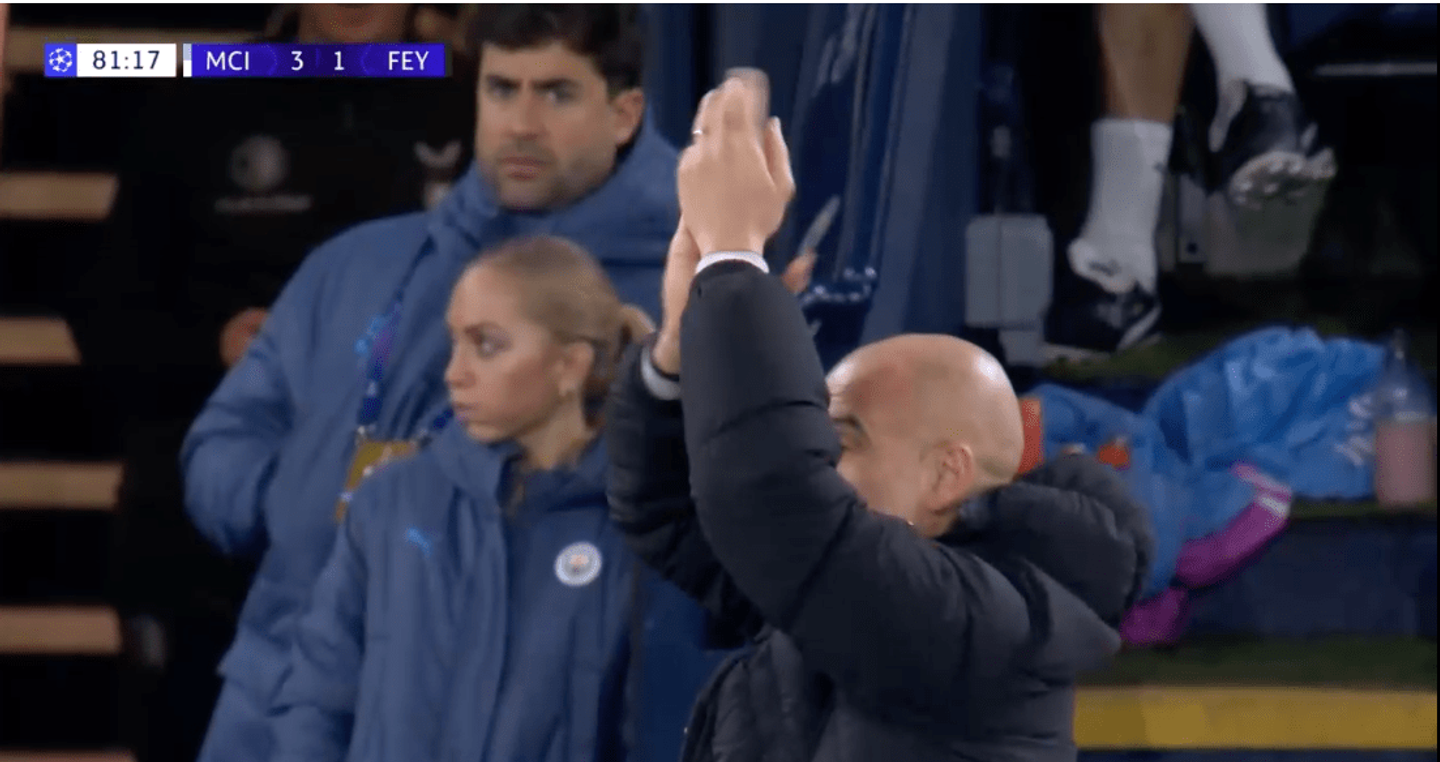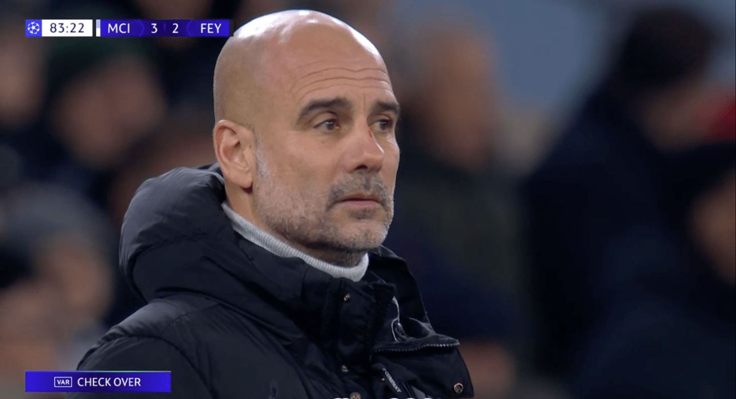 Guardiola, intanto, applaude. Forse perché tanto era sicuro che il City avrebbe subito questo gol e applaude il Dio malvagio che sta facendo succedere il tutto; forse perché crede che al VAR possano trovare un fuorigioco.
