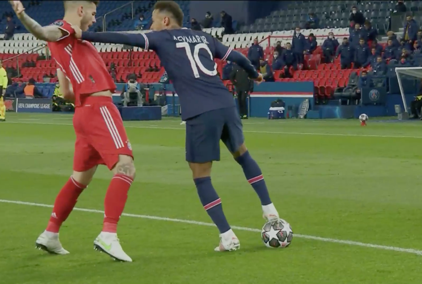 Quando poi Lucas Hernandez si è stufato di quello spettacolo e ha cercato di affondare il colpo, Neymar si è fatto passare la palla dietro il piede d’appoggio con il tacco e ha cercato di andare lungo linea trascinando a terra il suo avversario per il colletto della maglietta. È stato un tema di tutta la partita: Neymar che lascia il risultato in bilico e si mette nelle condizioni di farsi venire addosso la furia del Bayern, solo per uscirne ogni volta con un trucchetto più astuto e insolente.
