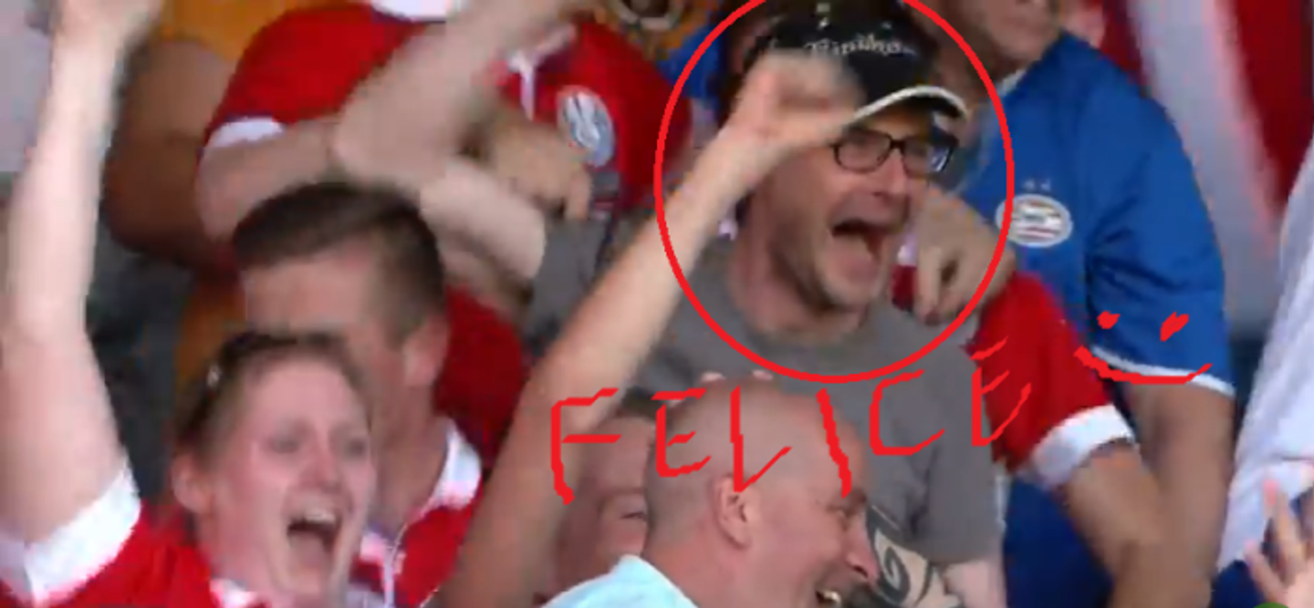 - I giocatori iniziano a festeggiare dopo aver letto qualcosa sul cellulare ma la diretta gol testimonia che l’Ajax ha ancora un minuto di recupero da giocare. Il che rende quel minuto, in cui alla fine non succede niente, un momento di grande sadismo: il doppio schermo con da una parte i giocatori del PSV che festeggiano sotto ai tifosi, e dall’altra parte il nulla riempito dalle espressioni dolorose di Frank De Boer.