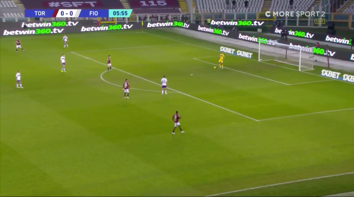 In particolare nei primi trenta minuti è stato un massacro. Quando la Fiorentina provava a impostare col portiere Terracciano - uno dei più lucidi del campionato nella gestione della palla - il Torino portava quattro giocatori sul limite dell’area avversario, con i due esterni sui difensori più larghi.