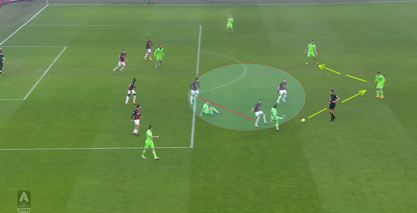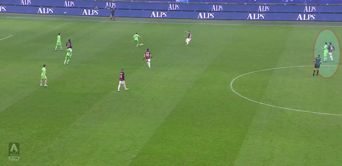 Anche l’azione da cui è nato il secondo gol del Milan evidenzia le migliori qualità degli uomini di Pioli, l’incessante volontà di recuperare il pallone andando in pressione sugli avversari e la capacità di giocare con velocità e in verticale, ribaltando rapidamente il fronte del gioco.